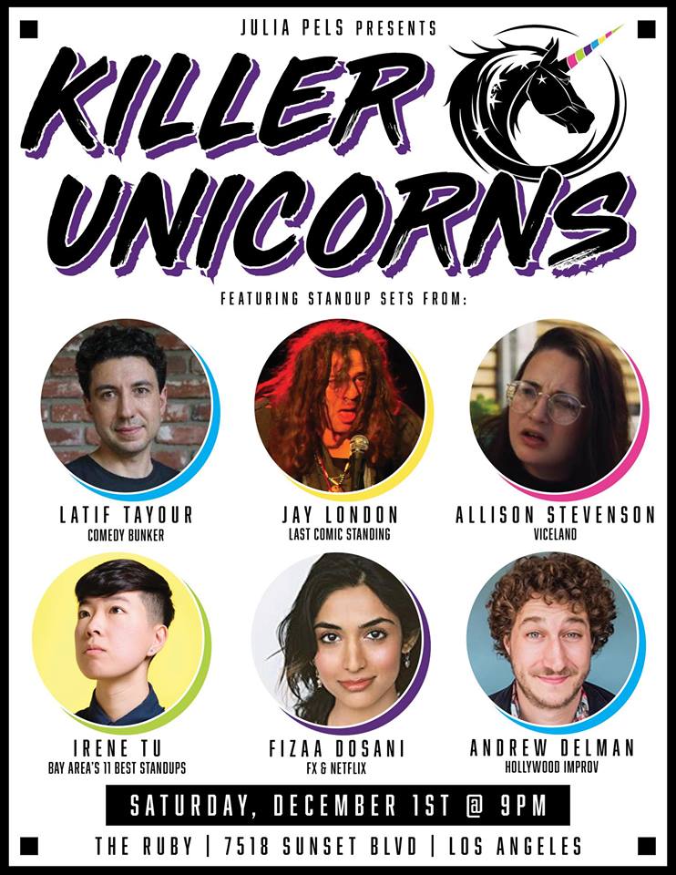 Killer Unicorns is a monthly comedy show featuring one of a kind stand-ups and storytellers.
